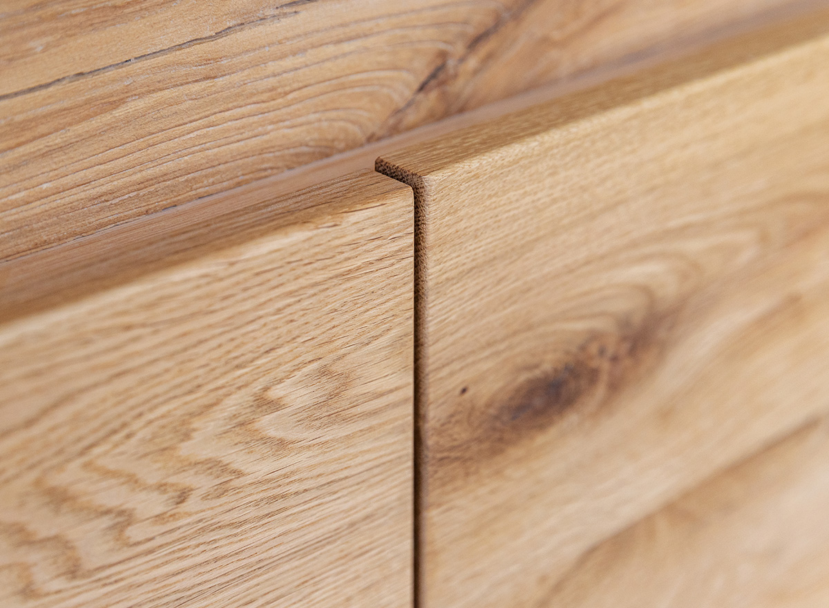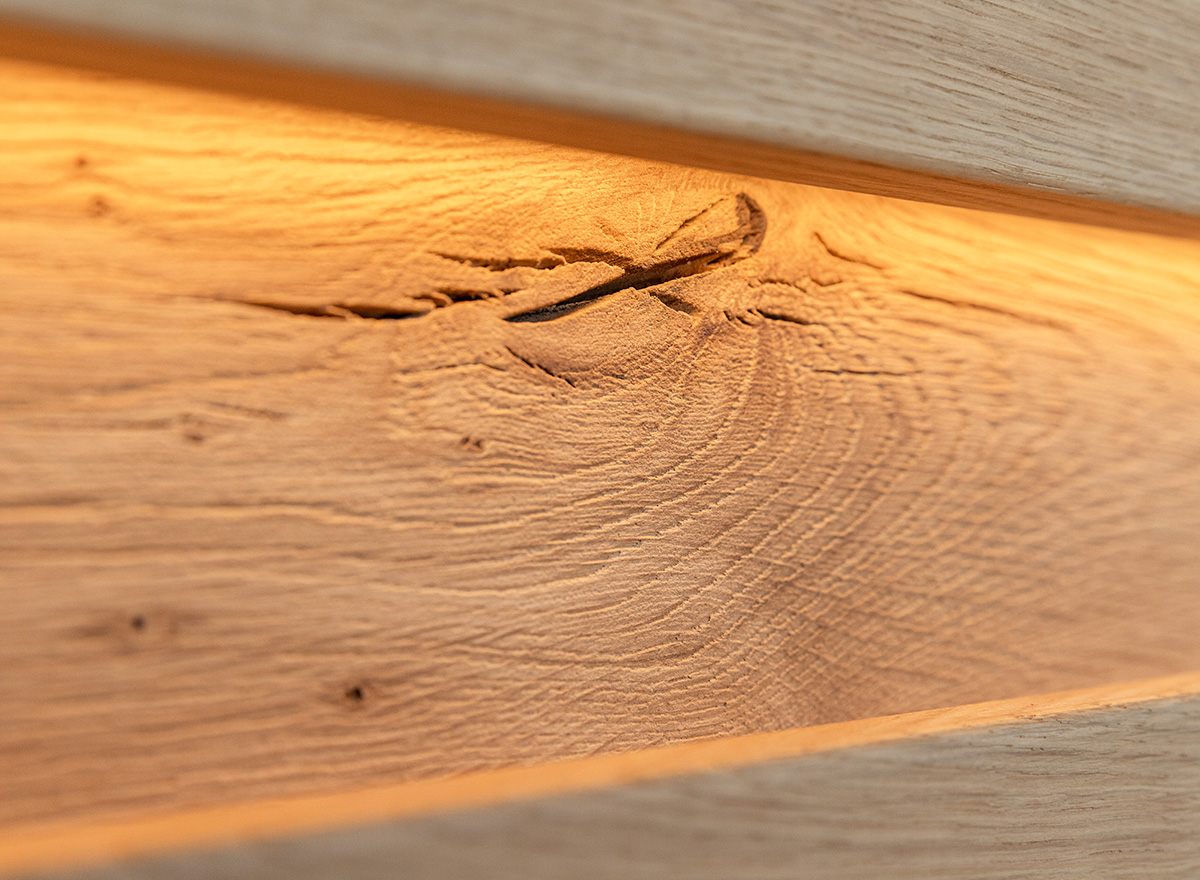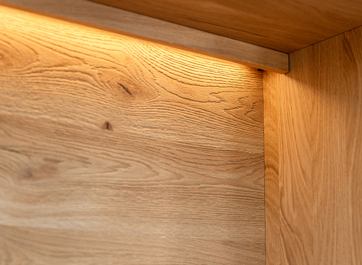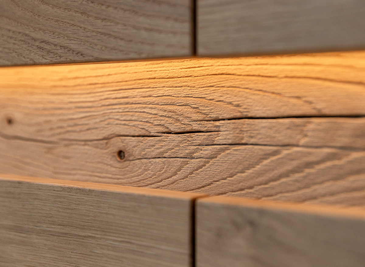 Dodáváme v dekoru dub divoký. Tato kolekce je specifická použitím originálních vložek s hluboce kartáčovaného dubového dřeva s osvětlením.