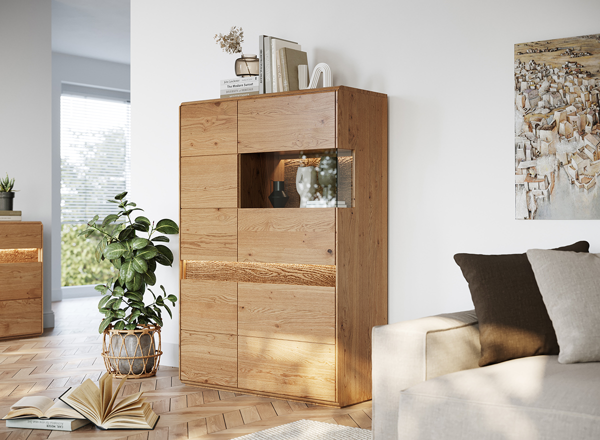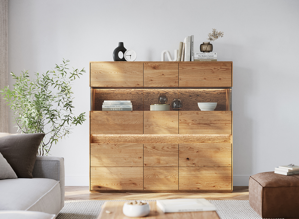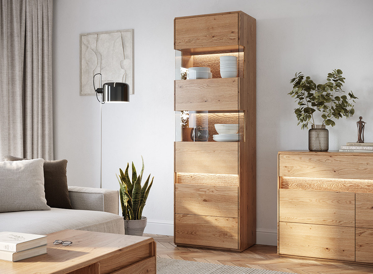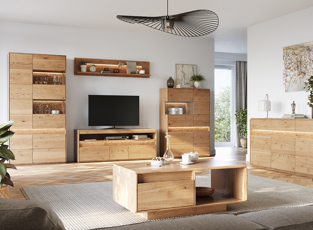 Nábytek z kolekce Sion je vyrobena z vysoce kvalitního divokého dubu. Výhodou dřevěného nábytku je vlastně jeho neomezená životnost a je vždy módní. Kromě toho je každý strom jiný, každá deska má jiné uspořádání suků, vláken dřeva, díky čemuž je nábytek jedinečný a neopakovatelný. Nábytek je vyráběn pod dohledem profesionálů, specializovaných truhlářů s mnohaletou praxí. Kolekce Sion nabízí celou řadu samostatně prodejných prvků, díky kterým můžete zařizovat nejen obývací pokoj, ale také jídelnu. Seznamte se s celou nabídkou a vytvořte si vlastní sestavu nábytku Sion.