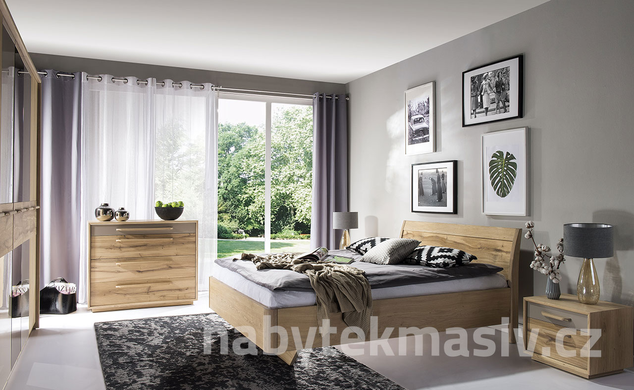 Ložnice Limon je vyrobena ze speciální přírodní dýhy s masivními částmi z dubového dřeva.