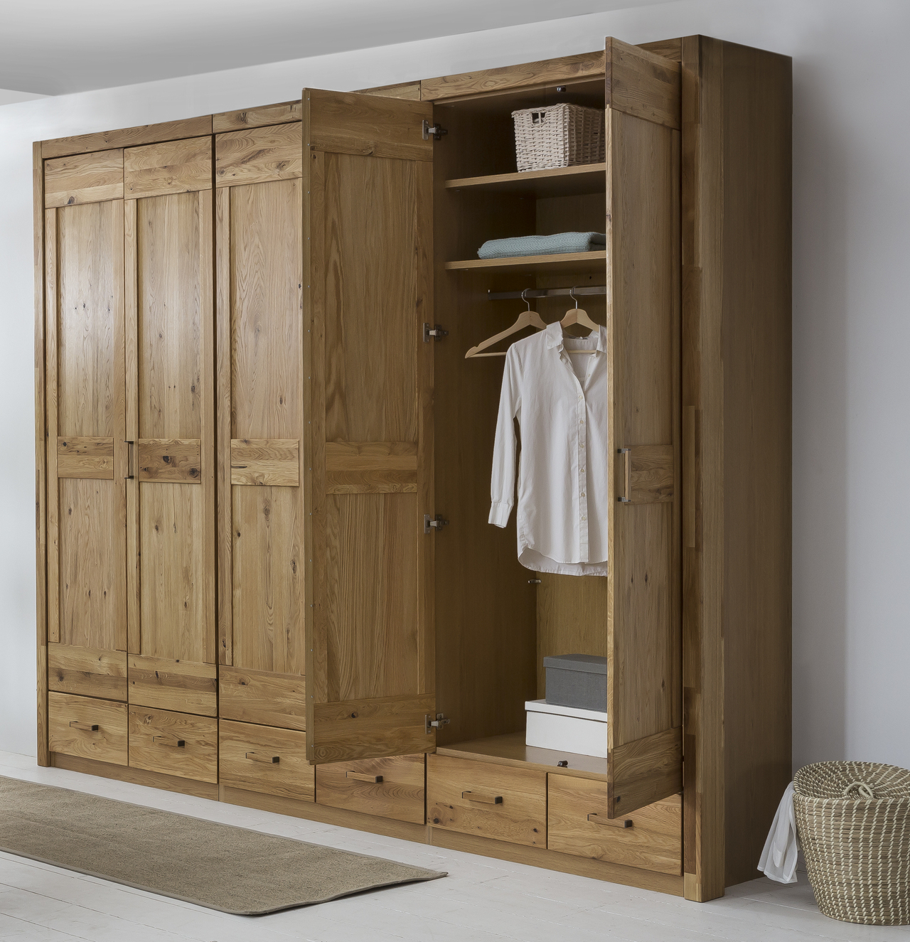 Luxusní bytový nábytek v kvalitním provedení dubového masivu v kombinaci s dubovou dýhou kde hlavní viditelné části jsou masiv.