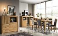 Kolekce nábytku Cantal vyniká krásou dřeva přírodního dubu u vitrín navíc v kombinaci s jemnými hliníkovými rámky dokonale ladícími s úchytkami. Hliníkove rámky i úchytky jsou jemně kartáčovany. S tímto nábytkem určitě efektivně a vkusně zařídíte obývací pokoj nebo jídelnu vašeho bytu.