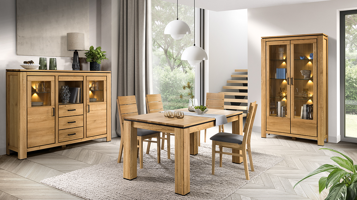 Luxusní bytový nábytek v kvalitním provedení dubového masivu v kombinaci s dubovou dýhou kde hlavní viditelné části jsou masiv.