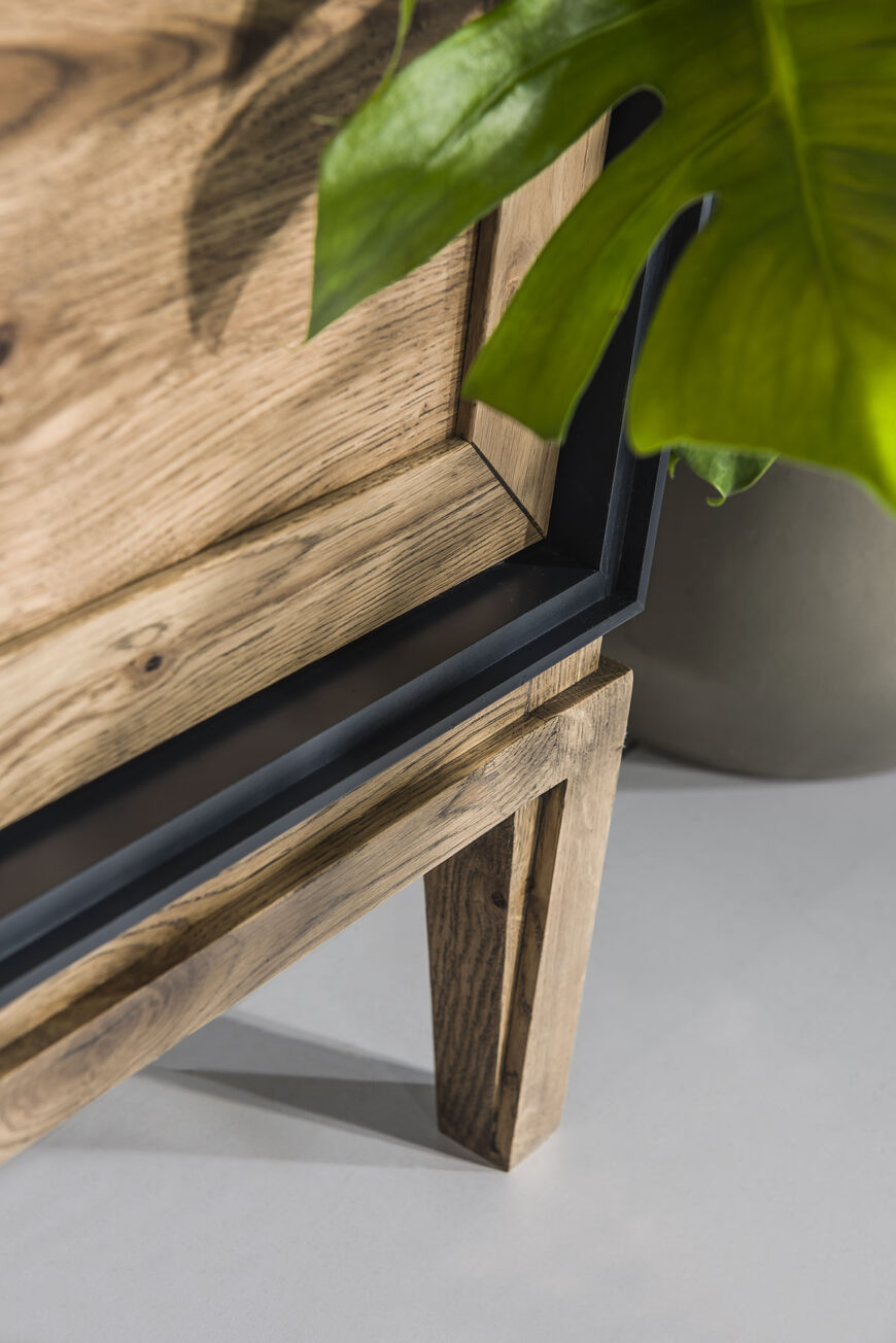 Dodáváme v dekoru originálních dýh starých dubu a lakovanými částmi v antracitové nebo bílé pískové.