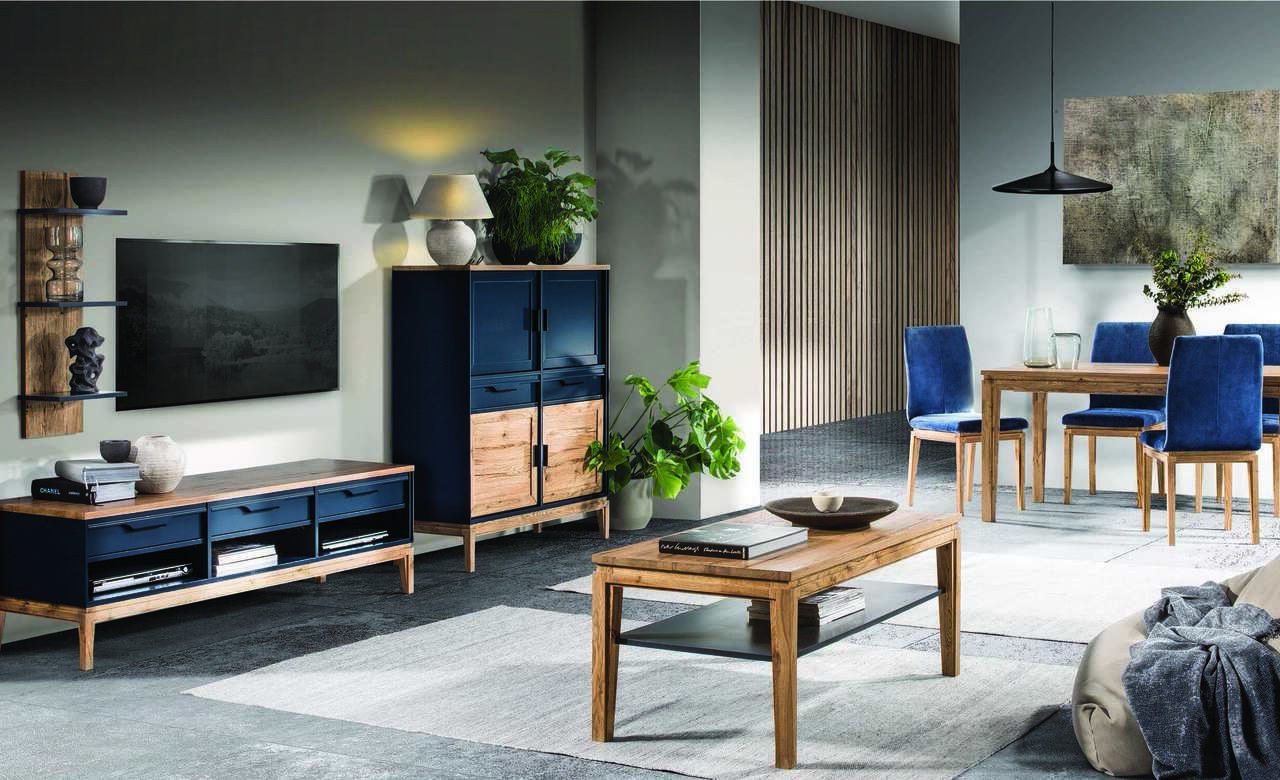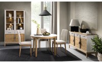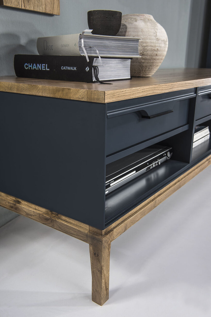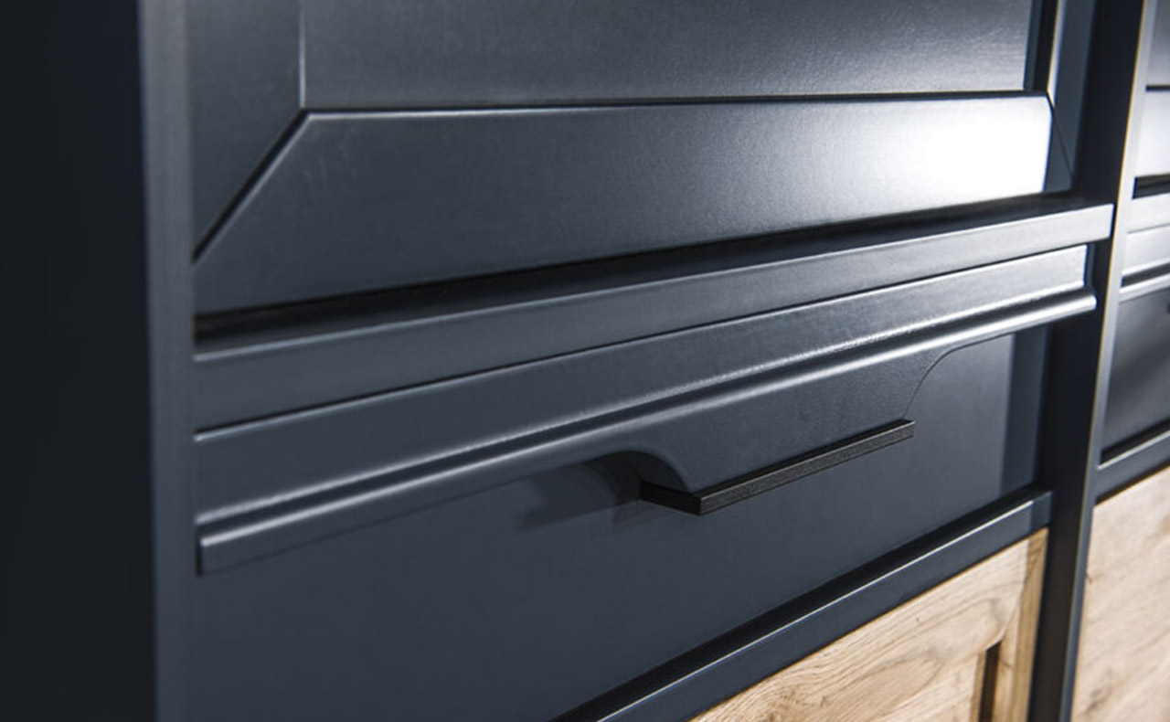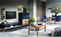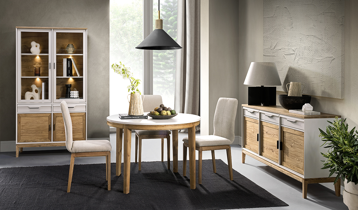 Inovativní kombinace masívního dubového dřeva a lakovanými antracitovými částmi použitá u této kolekce dává nábytku jedinečný a vysoce moderní vzhled. Dále jsou použity kvalitní rámy na prosklení a kovové úchytky. S tímto nábytkem určitě efektivně a vkusně zařídíte obývací pokoj nebo jídelnu vašeho bytu.
