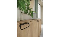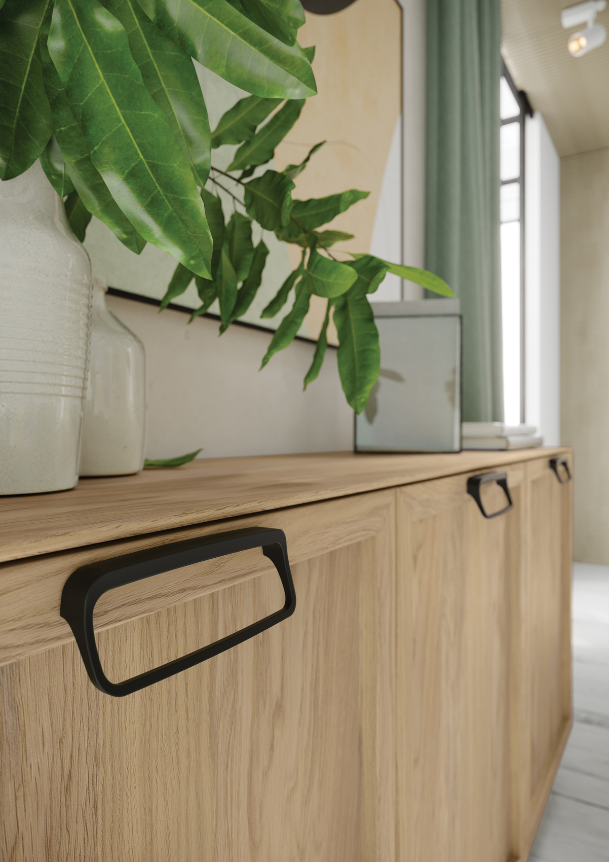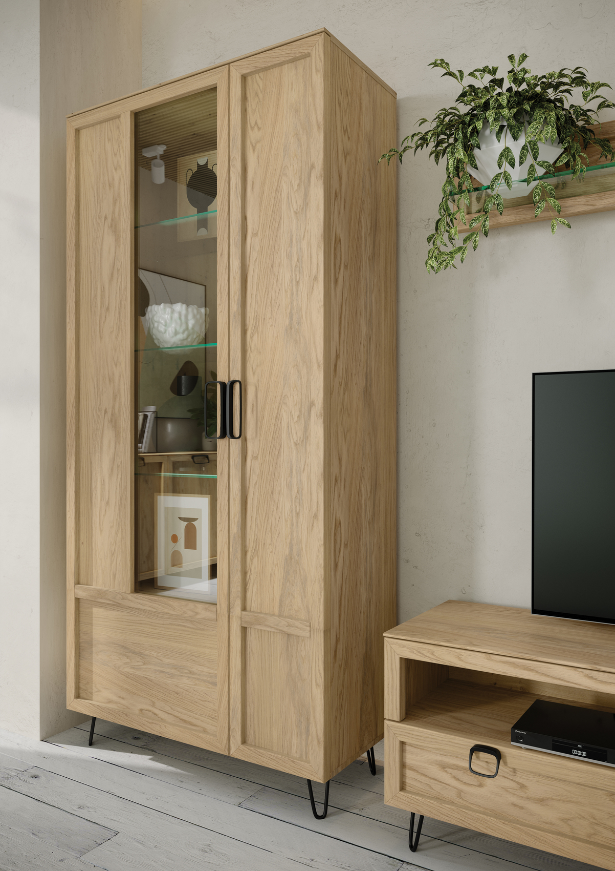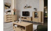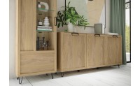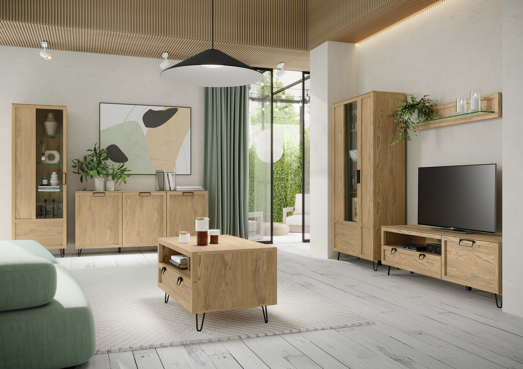 Tato kolekce nábytku vyniká použitím ceněného dubového dřeva které je v dekoru dub artisan lehce bělený a použitím masivních rámu pro skla což zvýrazňuje modernost této kolekce. Dále také použití kovových nohou které jsou designově sladěny s úchytkami v černé barvě je teď velice módní.
