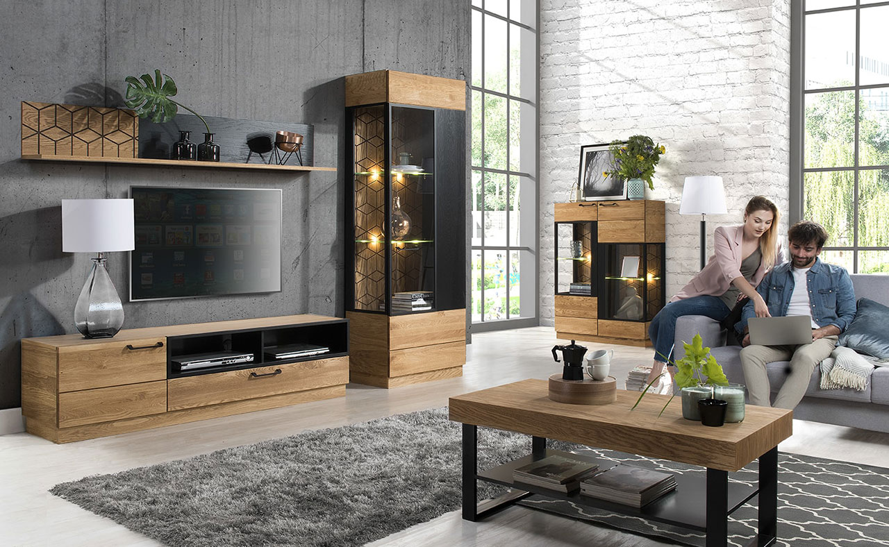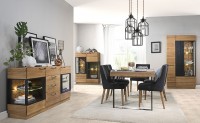 Kombinace skla ve tmavých rámech a velice nápaditého bočního prosklení s masívním dubem dodává této kolekci jedinečný moderní vzhled. Povrch dřeva je hladký při dotyku je krásně cítit i vidět struktura dubového dřeva. Tato kolekce je jedinečná použitím neobvyklého dekorativního prvku mozaikové dekorace zadních části prosklení. Kolekce MOSAIC nabízí celou řadu samostatně prodejných prvků, díky kterým můžete zařizovat nejen obývací pokoj, ale také jídelnu. Seznamte se s celou nabídkou a vytvořte si vlastní sestavu nábytku MOSAIC.