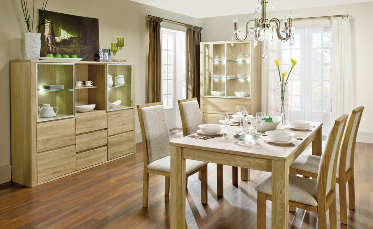 Luxusní bytový nábytek v kvalitním provedení dubového masivu v kombinaci s dubovou dýhou kde hlavní viditelné části jsou masiv.
