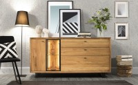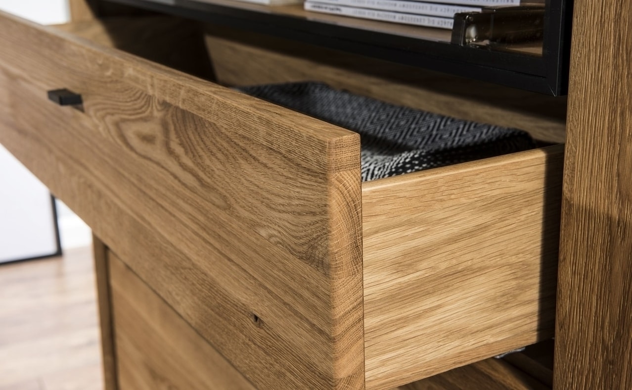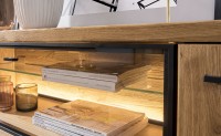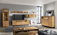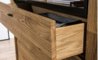 Elegantní dubová obývací sestava z masivu a přírodní dýhy. Moderní design s šikmě slícovanými rohy a kovovými nožkami - to jsou hlavní přednosti dubového nábytku VIGO. Zadní části prosklených dvířek jsou vyrobeny speciálním designem se skládaných štípaných destiček viz foto. Nábytek je ošetřen přírodním voskem a olejem německé značky Livos. Nábytek je vybaven tichým dovíráním zásuvek a dvířek "soft-close". V ceně nábytku je osvětlení. Kolekce VIGO nabízí celou řadu samostatně prodejných prvků, díky kterým můžete zařizovat nejen obývací pokoj, ale také předsíň. Seznamte se s celou nabídkou a vytvořte si vlastní sestavu nábytku VIGO.