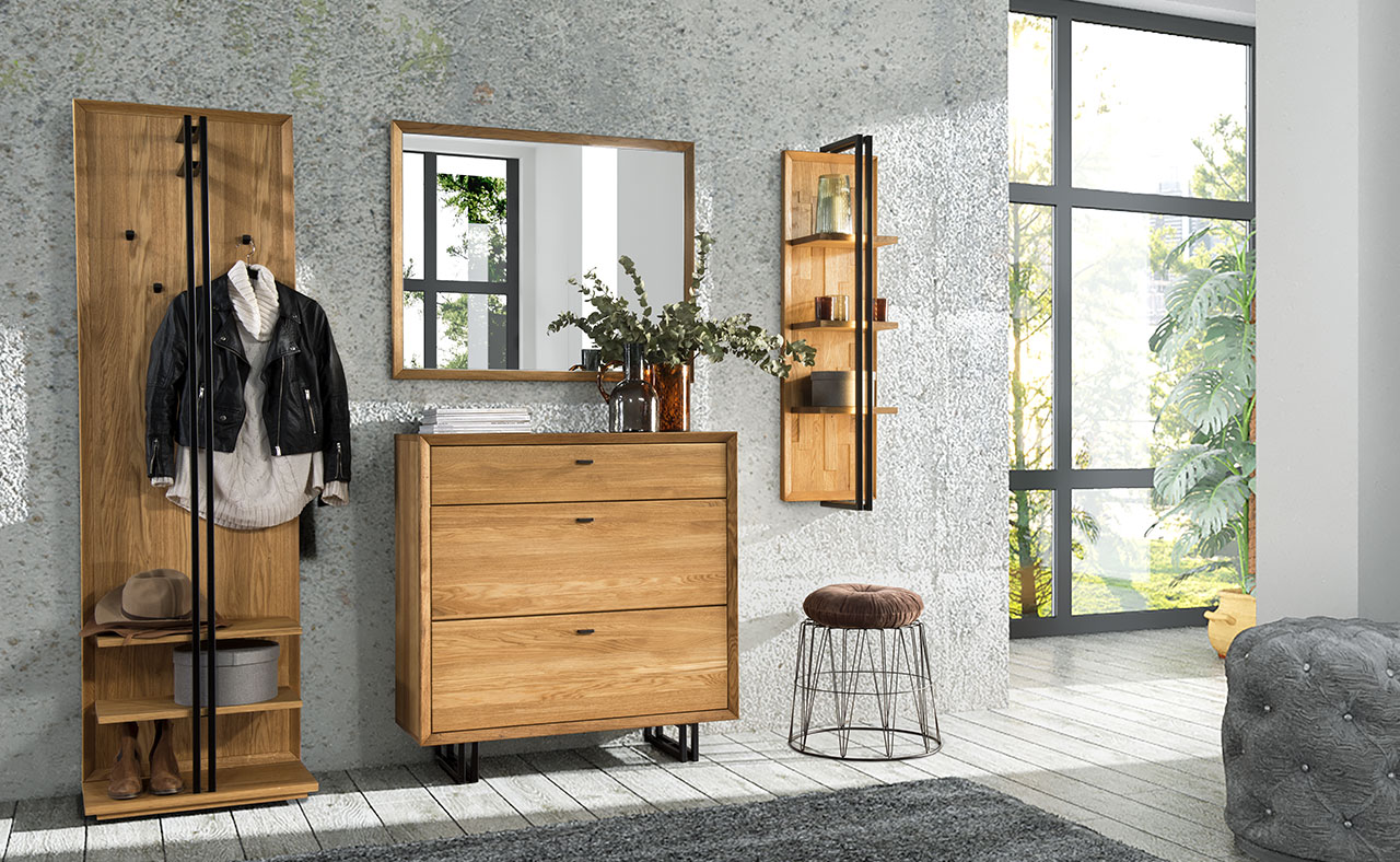 Luxusní předsíňový nábytek v kvalitním provedení dubového masivu v kombinaci s dubovou dýhou kde hlavní viditelné části jsou masiv.