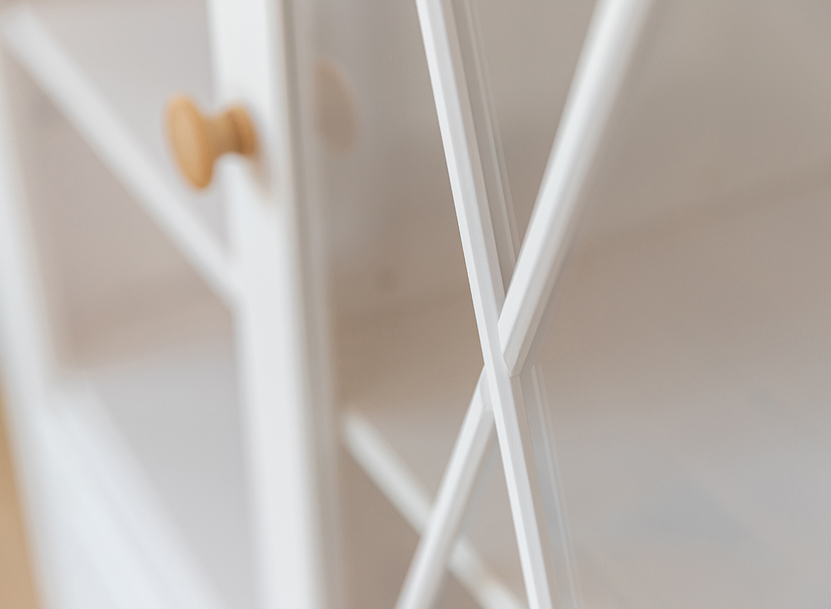 Dodáváme v dekoru bílá teplá / přírodní borovice s dřevěnými úchytkami.
