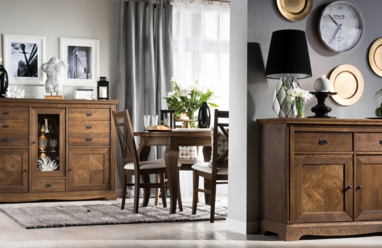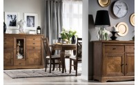 Nábytek je dodáván ve smontovaném stavu (pevnější stabilnější bez viditelných a estetiku kazících šroubu než skládačky) a zásuvky i dvířka jsou vybaveny systémem tlumení pro měkké a tiché zavírání. Skla ve vitrínách jsou stejná u obou dekoru. Kolekce je vyrobena kvalitně a přesně vyznačuje se vytříbenými proporcemi a sofistikovanými detaily. Kombinuje klasický přístup k formě nábytku s moderním pohledem na způsob výroby. Nábytek je jedinečný použitím inovativního efektu stárnutí čímž je dosaženo unikátního zabarvení. Nábytkem hezky a stylově zařídíte váš obývací pokoj nebo jídelnu.